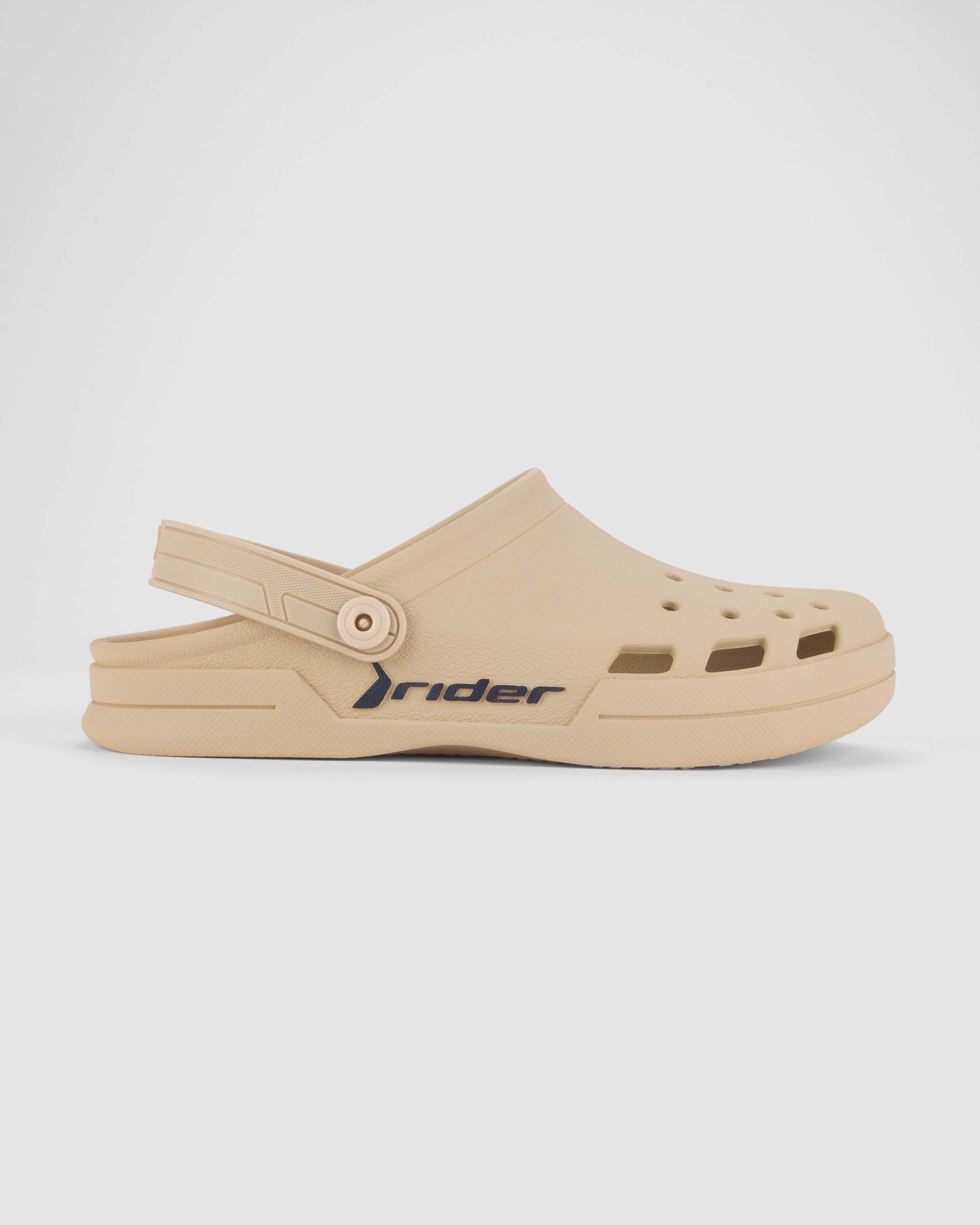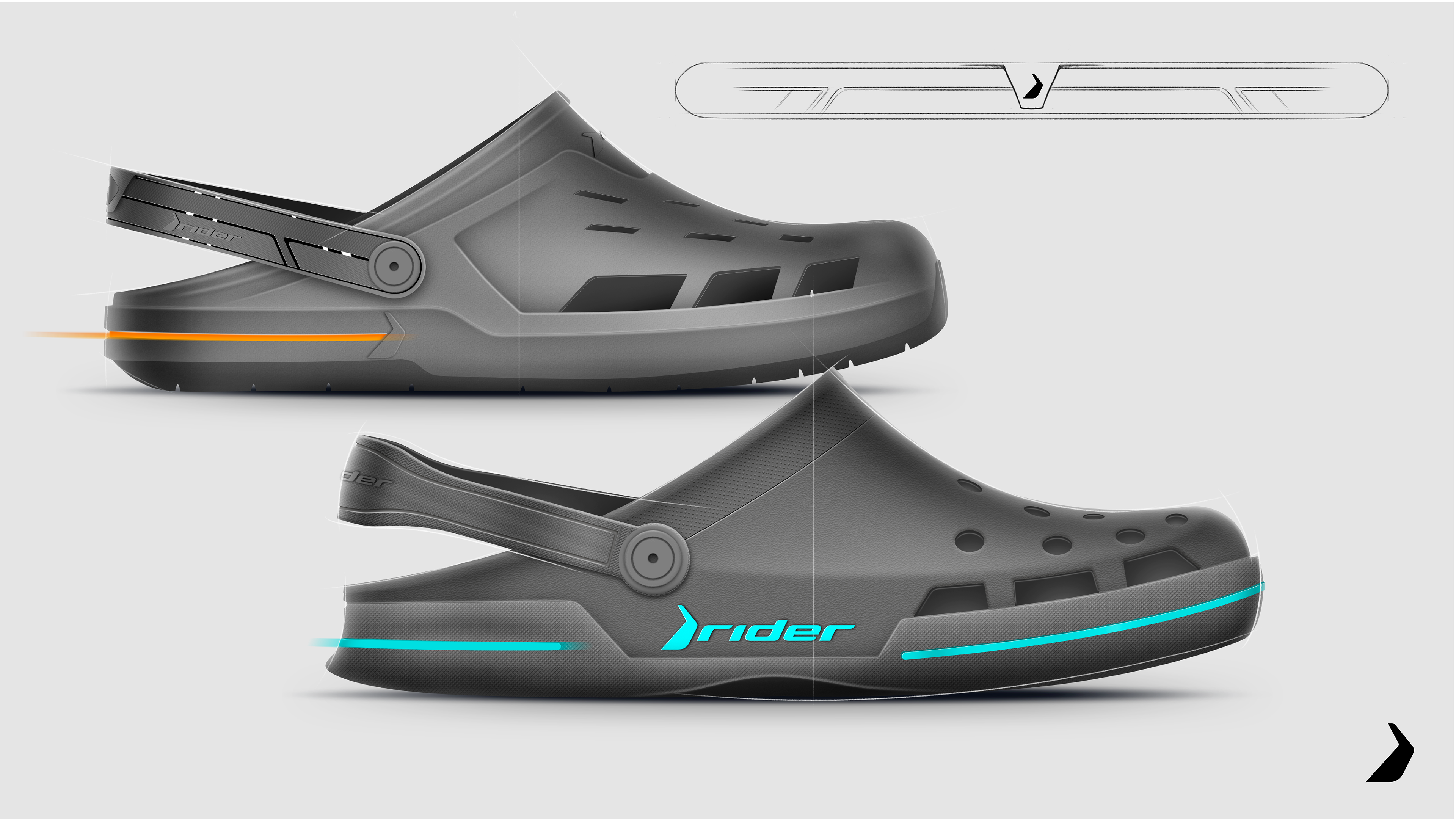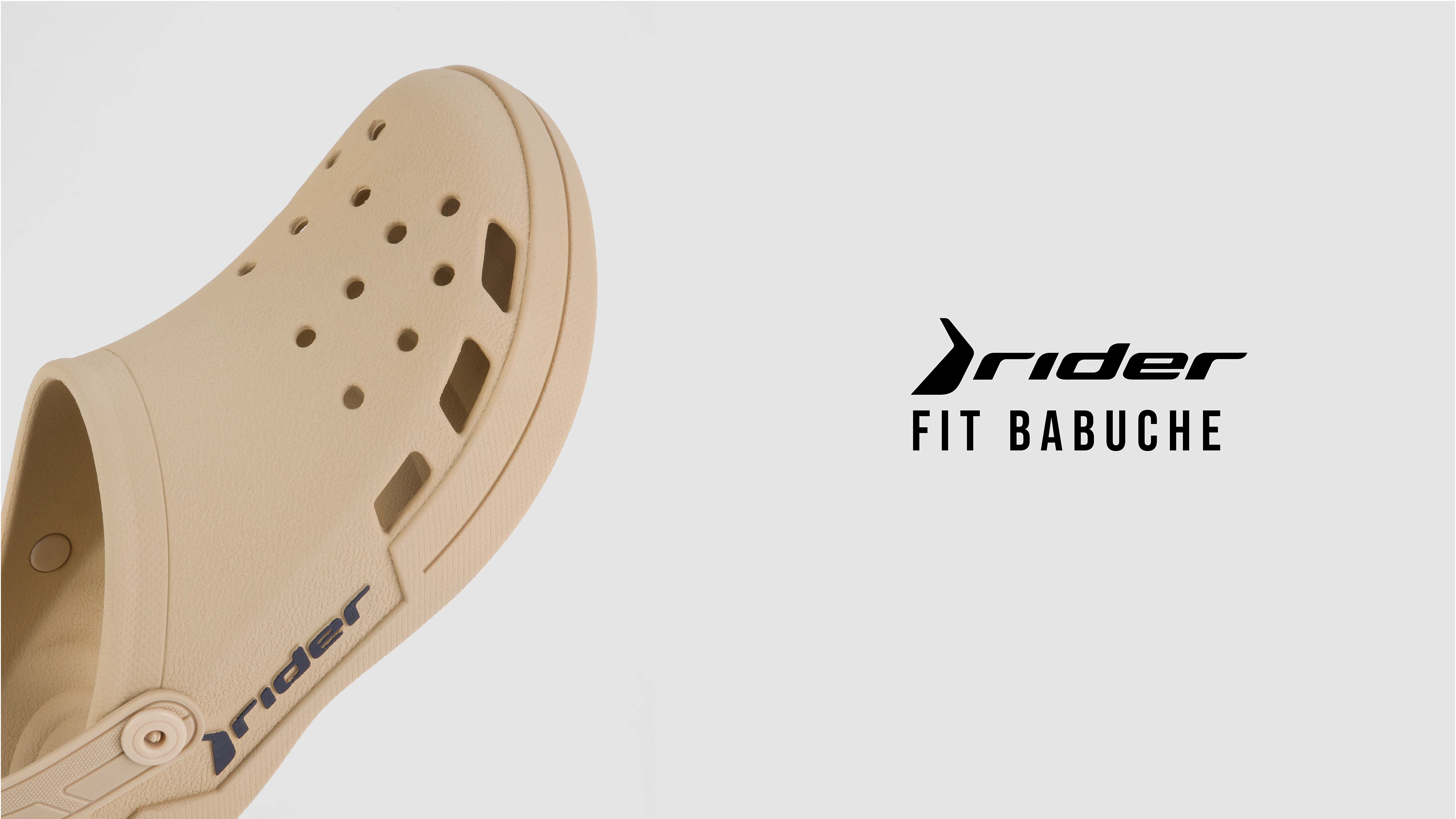 New clog-style footwear with adjustment at the back with the Rider brand identity.