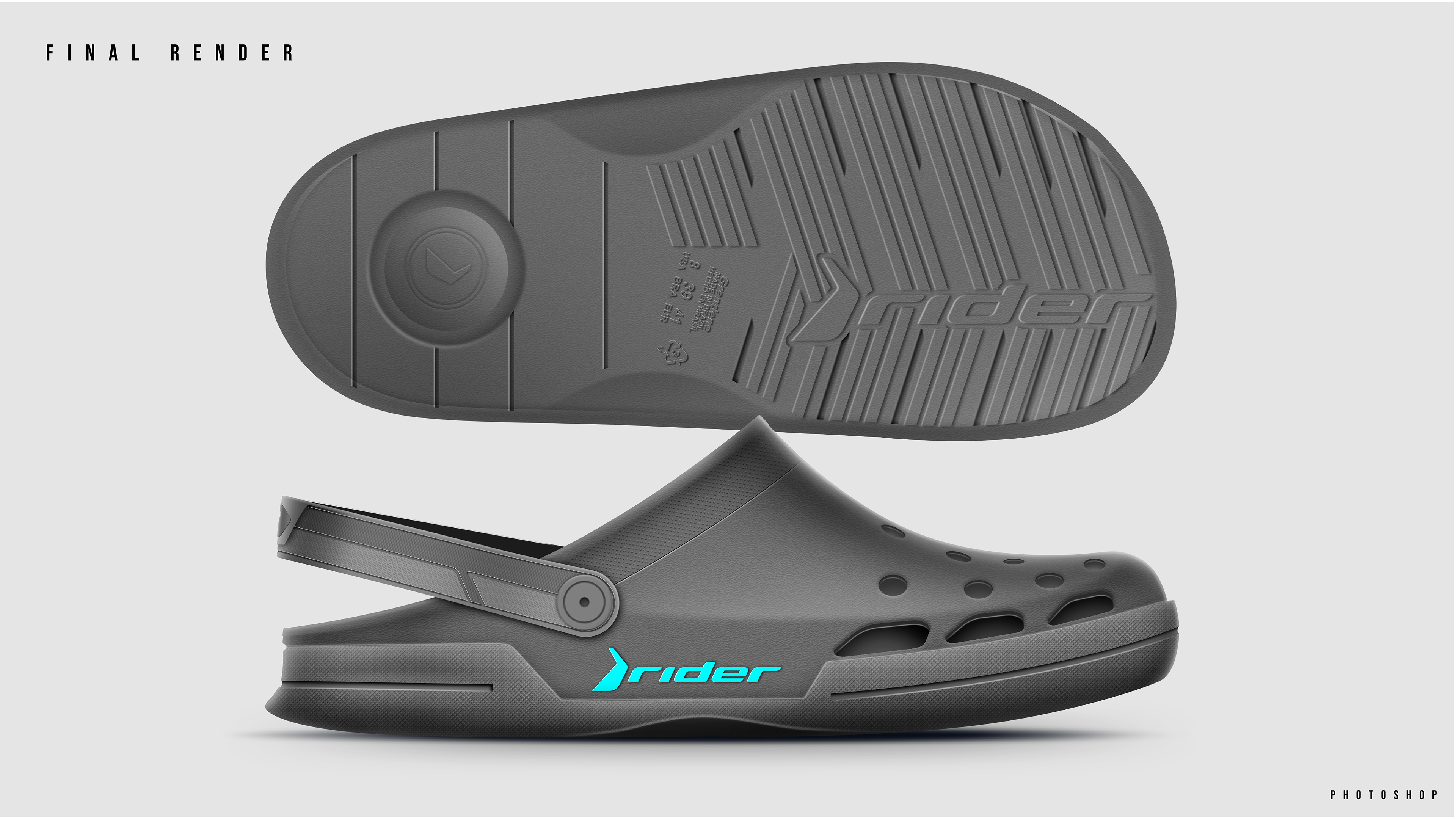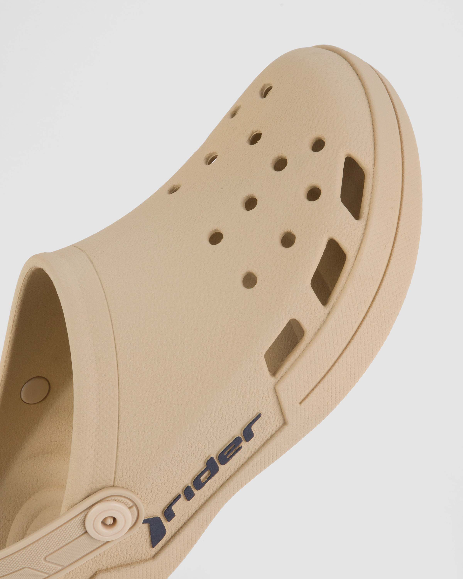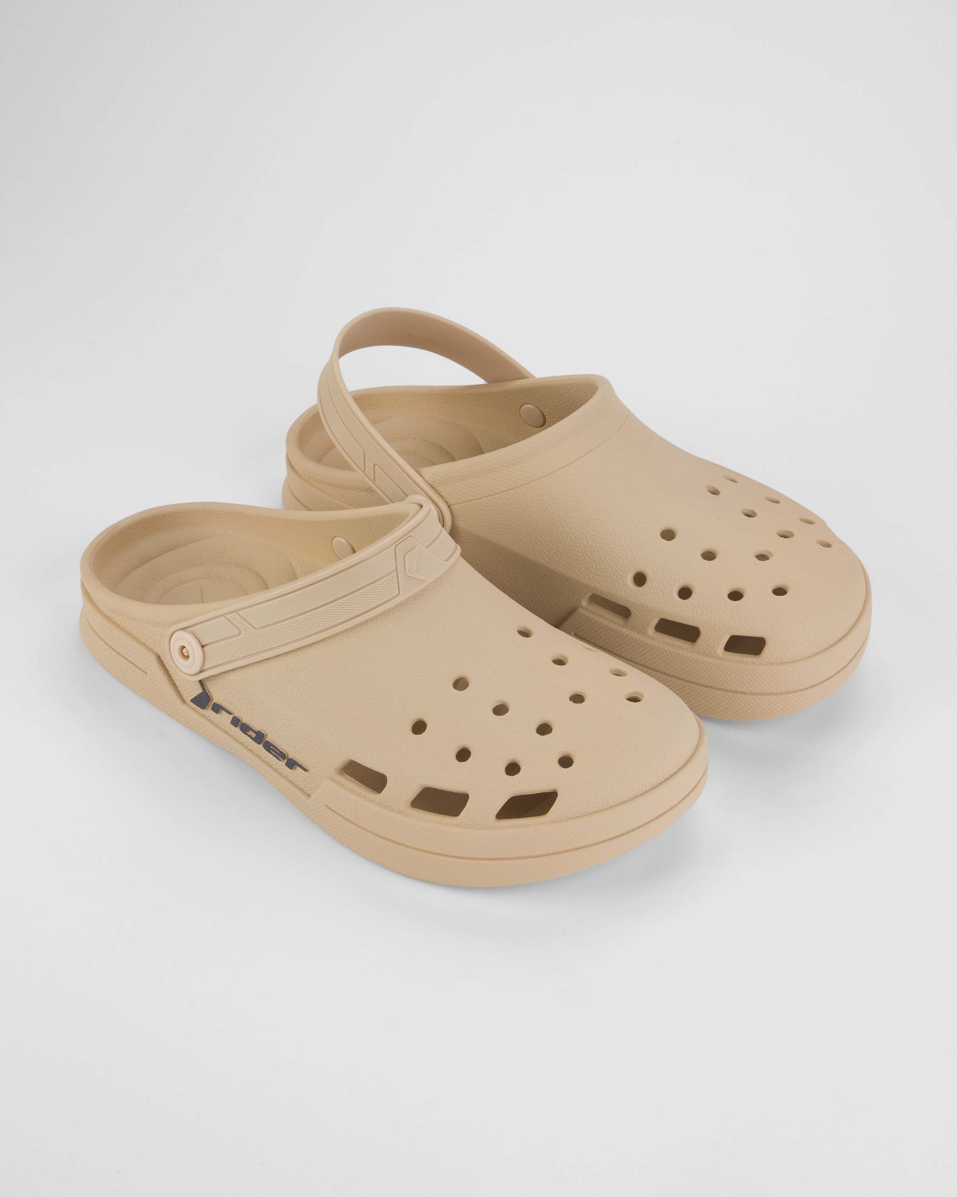 New clog-style footwear with adjustment at the back with the Rider brand identity.